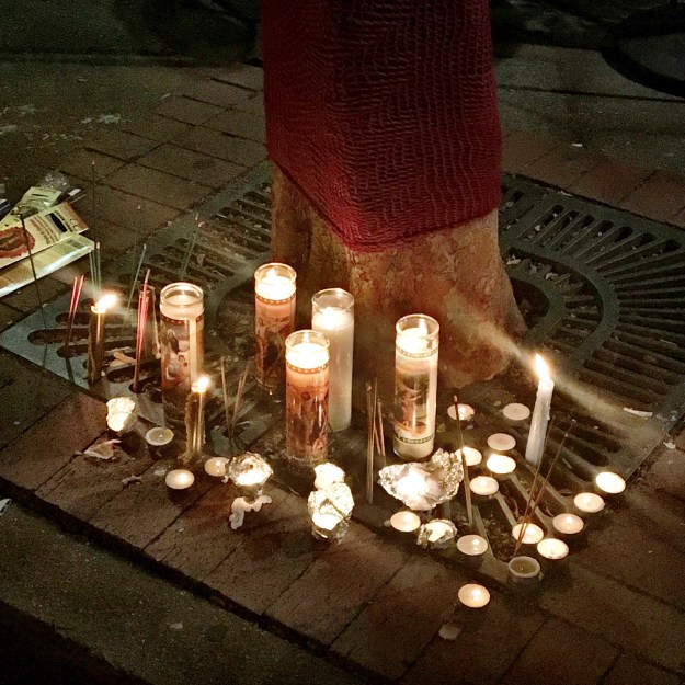 We were honored to participate in a Community Candlelight Vigil for Paris downtown at Tamp & Grind this evening with members of all faiths and none coming together in unity and hope. We shared in Loving Kindness meditation for all beings everywhere.